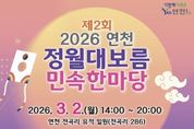 (비전21뉴스) 경기도 연천군은 2026년 정월대보름을 맞아 민족의 세시풍속을 계승하고 주민의 건강과 안녕을 기원하기 위해 오는 3월 2일 오후 2시 연천 전곡리 유적 유휴부지에서 '제2회 연천 정월대보름 민속한마당' 행사를 개최한다고 밝혔다. 올해로 두 번째를 맞는 이번 행사는 군민에게 풍성한 볼거리와 즐길거리를 선사하고자 열리는 연천군의 대표 정월대보름 기념 행사다. 행사는 개회식을 시작으로 ▲전통 연 시연 ▲연천문화원 문화공연 ▲연천군체육회 레크리에이션 ▲대형 연 시연 ▲댄스·버스킹 공연 ▲LED 연 시연 순서로 진행된다. 이어 연천군을 대표하는 화진뜰 풍물패와 아미산 울어리 풍물패가 올 한 해의 행복과 풍년을 기원하는 공연을 펼칠 예정이다. 행사의 대미는 달집 태우기로 장식된다. 행사장 중앙에 마련된 거대 달집에 주민들이 직접 작성한 소원지를 매달고 불을 밝혀 액운을 태우고 복을 기원하는 전통 달맞이 행사가 진행된다. 행사 기간 중에는 ▲연 날리기 체험 ▲LED 쥐불놀이 체험 ▲소원지 쓰기 ▲전통놀이 체험 등 다양한 체험 프로그램이 상시 운영되며, 부럼을 비롯한 각종 정월대보름 먹거리도 마련돼 더욱 풍성
