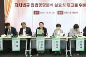 (비전21뉴스) 경기도의회와 제주특별자치도의회는 10월 24일 금요일 오후 2시, 경기도의회 2층 예담채에서 '자치법규 입법영향분석 실효성 제고를 위한 토론회'를 공동 개최했다. 이번 토론회는 지방의회의 자치입법 역량을 강화하고, 자치법규의 실효성을 높이기 위한 목적으로 마련됐으며, 양 의회 사무처장, 국회입법조사처 및 지방의회 자치법규 관계자 등 50여 명이 참석하여 열띤 논의를 펼쳤다. 주제발표로는 아주대학교 공공정책대학원 이진수 박사가 자치법규 입법영향분석 평가기준 개선방안에 대해 발표했다. 이어 한국법제연구원 차현숙 혁신법제본부장이 제주의 입법평가 사례를 바탕으로 입법평가의 실효성 확보 방안을, 김준 전 국회입법조사처 실장이 법률 입법영향분석 기준에 대해 각각 발표를 이어갔다. 사례발표로는 경기도의회 김홍 입법조사관이 도의회 사후입법영향평가 현황과 과제를, 국회입법조사처 이동영 입법조사관이 국회입법조사처 입법영향분석 사례를 소개했다. 이후 경복대학교 복지행정학과 이상미 교수를 좌장으로 한 자치법규 입법영향분석 제도의 실효성을 높이기 위한 종합토론이 진행됐다. 경기도의
