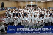 (비전21뉴스) 광주광역시체육회(회장 전갑수)가 16일 오후 국민생활관 세미나실에서 ‘전국생활체육대축전’에 참가하는 선수단의 선전을 기원하는 결단식을 개최했다. 이날 결단식에는 전갑수 광주광역시체육회장을 비롯해 구제길 동구체육회장, 정천규 서구체육회장, 정희환 북구체육회장, 배영모 광산구체육회장, 광주광역시체육회 윤웅철, 박종규 부회장 등 종목단체 관계자 180여명이 참석해 선수단의 선전을 기원했다. 이날 행사는 선수단의 훈련 모습과 주요 활약상을 담은 영상시청을 시작으로 참가계획 보고, 선수대표 선서와 단복전달식 순으로 진행됐다. 선수 선서에는 당구 박종문(79세) 선수와 체조 전양숙(74세) 선수가 함께 나서 선수단의 힘찬 각오를 밝혔다. 오는 23일부터 경상남도 김해시 일원에서 열리는 ‘2026 전국생활체육대축전’에는 축구, 탁구, 파크골프 등 31개 종목 700명(선수 626, 임원 74)의 선수단이 참가할 예정이다. 전갑수 체육회장은 “이번 결단식은 3년 만에 개최되는 뜻깊은 자리로, 광주선수단이 한자리에 모여 결의를 다지는 의미 있는 시간”이라며 “안전을 최우선으로 생각하며 광주선수단 모