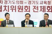 (비전21뉴스) 경기도교육청과 경기도의회가 2026년도 본예산 편성 과정에서 총 2,000억 원 규모의 협치 예산을 공동으로 추진하기로 합의하며 교육 협력의 새로운 전기를 열었다. 경기도교육청은 5일 도의회 예담채에서 ‘경기도의회-경기도교육청 제1차 여야정 협치위원회 전체회의’를 개최했다. 이번 회의는 도의회와 교육청이 함께 2026년도 협치 예산 합의문에 서명하며 지속 가능한 교육정책 협력체계를 공고히 하고자 마련됐다. 공동의장 3인은 합의문에 서명하며 교육청과 도의회 간 협치의지를 공식화했다. 합의를 통해 ▲현장 중심 학교운영 ▲교육행정 개선 ▲미래교육 전환 ▲교육환경 개선 ▲맞춤형 교육확대 등 5대 분야 총 2,000억 원 규모 협치 예산을 공동 추진하기로 했다. 임태희 교육감은 인사 말씀을 통해 “여야정 협의가 늘 화두로 떠오르는데 실제로 결실은 많치 않다”며 “이런 점에서 대단히 성숙하고 건강한 도정의 협치 모습을 보이는 현장이라고 생각한다”고 말했다. 이어 “최종적으로 학생과 교육 현장의 학부모, 교직원들을 위해 앞으로 후속 조치를 함께 해주시길 바란다”며 “이견