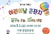(비전21뉴스) 가평군은 오는 5월 1일 오전 10시 가평종합운동장에서 ‘제15회 가평군 어린이날 기념행사’를 개최한다. 가평군어린이집연합회와 가평군육아종합지원센터가 공동 주관하는 이번 축제는 기념행사와 공연, 놀이, 체험 부스 등 다채로운 프로그램으로 꾸며진다. 행사는 조종청소년오케스트라의 식전 공연으로 막을 올린다. 이어지는 본행사에서는 어린이 대표의 어린이 헌장 선언문 낭독과 군수 및 군의장의 기념사·축사, 공동 주관 기관장들의 개회 선언이 진행된다. 어린이날 유공자 및 모범어린이 6명에 대한 표창은 행사 이후인 5월 4일 가평군 월례조회 시 별도로 수여할 계획이다. 현장에는 가평경찰서, 교육지원청, 보건소 등 17개 기관과 단체가 참여해 총 26개의 체험 및 홍보 부스를 운영한다. 주요 행사는 △문화다양성 이해교육 △에코백 만들기 △장난감 수리 및 진단 등이며, 에어바운스와 페이스 페인팅 등 놀이 시설도 함께 운영한다. 가족 단위 방문객을 위한 맞춤형 프로그램도 풍성하다. 시간대별로 영유아 보물찾기, 초등학생 프리킥 챌린지를 비롯해 아빠 로켓 던지기와 엄마 림보 이벤트 등 온 가족이 참여할 수 있는 행사