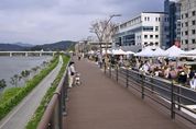 (비전21뉴스) 양평의 일상 속 자연이 새로운 관광공간으로 다시 태어났다. 양평군은 도시재생사업을 통해 조성한 강변 복합문화공간 ‘남한강 테라스’를 개장하며 군민과 관광객이 함께 즐기는 정주형 관광도시로의 전환을 본격화했다. 이번에 개장한 ‘남한강 테라스’는 양평읍 양근교에서 양평교까지 약 1.1km 구간에 걸쳐 조성됐다. 양평군은 도시재생사업 ‘남한강변 특화거리 조성사업’으로 총 95억원의 예산을 투입해 남한강변을 따라 걷기 좋은 산책로와 문화예술 테마거리, 친수 및 휴식공간을 갖춘 복합문화관광 명소로 탈바꿈시켰다. 기존 산책로에 폭 5m 규모의 데크길을 새로 놓고, 벤치와 가로수, 야간경관 조명을 추가해 낮에는 남한강 조망을 즐기고 밤에는 빛의 거리로 변하는 매력적인 공간으로 꾸몄다. 천혜의 남한강 물길과 도시재생의 결실이 어우러진 이번 사업을 통해 양평의 중심 강변이 다시 활기를 찾게 됐다. 양평군은 완공을 기념해 지난 26일 녩양평 물들임 테라스 축제’를 양평군청 앞 특설무대 일원에서 성황리에 개최했다. 이번 행사는 도시재생사업의 성과를 군민과 공유하고 지역 상권과 문화가 함께