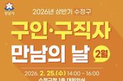 (비전21뉴스) 성남시는 시민의 취업을 지원하고 지역 기업의 인력난 해소를 위해 오는 2월 25일 오후 2시부터 4시까지 수정구청 1층 대회의실에서 ‘구인·구직자 만남의 날’ 행사를 연다. 이번 행사에는 12개 기업이 참여해 다양한 직종을 대상으로 구직자와 1대1 현장 면접을 진행하며, 총 55명을 채용할 예정이다. 참여 기업과 채용 직종은 △㈜현대에쓰앤에쓰(생산) △㈜케어마스터(객실관리, 미화) △노무법인 더보상 법률원(영업) △프리미안데이케어(요양보호사) △하이머시닝㈜(MCT 가공·조작) △㈜아람인테크(조리원) △케이엔자산관리㈜(보안) △공정노무법인(법률사무원 외근) △㈜대원버스(승무사원) △이엠플러스(생산, 자재관리) △파네트리(판매, 생산) △분당센트럴요양병원(조리)이다. 구직자는 이력서 등 구비서류를 지참해 행사 당일 현장을 방문하면 희망 기업의 부스에서 순서에 따라 면접에 참여할 수 있다. 시는 현장 면접과 함께 1대1 취업 컨설팅, 지문 적성 검사, 이력서 사진 무료 촬영 등 다양한 부대행사도 운영해 구직자의 취업 준비를 지원할 계획이다.