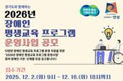 (비전21뉴스) 안성시는 성인 장애인의 평생학습 권리를 보장하고 평생교육 참여 기회를 확대하기 위하여 경기도와 안성시가 함께 지원하는 '2026년 장애인 평생교육 프로그램 운영' 공모사업을 추진한다. 이번 공모사업은 성인 장애인을 위한 맞춤형 평생교육 프로그램을 발굴‧지원하여 사회참여 기회를 넓히고, 누구나 차별 없이 배움의 기회를 누릴 수 있는 평생학습 환경을 조성하는 데 목적이 있다. 신청 대상은 안성시에 주소(등록)를 둔 장애인 평생교육 기관‧단체이며, 신청 기간은 12월 2일부터 16일까지이다. 모집 규모는 ▲평생교육법 제7진 분류를 기반으로 한 ‘장애인 평생교육 프로그램’ 1개소와 ▲'장애인복지법'에 따른 15개 장애 유형 분류를 기반으로 한 ‘장애유형별 평생교육 프로그램’ 2개소, 총 3개소이다. 선정된 프로그램은 2026년 2월부터 10월까지 운영될 예정이다. 공모사업에 대한 자세한 내용은 안성시청 누리집 및 안성배움e 누리집에 게시된 공고문을 통해 확인할 수 있으며, 신청 서류 또한 해당 누리집에서 내려받을 수 있다. 시 관계자는 “이번 사업을 통해 성인 장애인의 평생학습 접근성을 높