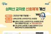 (비전21뉴스) 파주시는 운정신도시 내 상습 정체가 발생하던 심학산 교차로와 산내마을 10단지 사거리, 산내공원 교차로 등 3개소에 대해 신호체계 개선을 우선 추진해 11월 17일부터 현장 적용을 완료했다고 밝혔다. 이번 개선은 출근시간마다 교차로 내부에서 차량이 멈춰 모든 방향의 통행이 막히고, 좌회전 대기 공간이 부족해 자유로 방면 직진 흐름까지 지연되며 인근 단지 차량의 진출입도 어려웠던 문제를 해결하기 위한 조치다. 시는 이러한 구조적 정체를 해소하기 위해 기존 양방향 직진 위주로 운영되던 신호체계를 직·좌회전 병행 방식으로 바꾸고, 3개 교차로의 신호 연동을 재정비했다. 또한 구간 전체의 흐름이 끊기지 않도록 ‘스마트 교차로 시스템’을 활용해 신호체계를 최적화했다. 양성원 첨단도시정보과장은 “심학산 교차로는 운정신도시 주민들이 서울 등으로 이동하는 중요한 지점”이라며, “이번 신호체계 개선이 실질적인 소통 개선으로 이어질 수 있도록 지속적으로 점검하고 안정적인 운영을 위해 최선을 다하겠다”라고 밝혔다. 시는 적용 이후에도 교통 흐름, 보행 대기시간, 민원 등을 지속적으로 검토해 필요한 부분