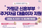 (비전21뉴스) 가평군이 신혼부부의 주거비 부담을 줄여주기 위해 대출이자 지원에 나선다. 군은 ‘2026년 상반기 신혼부부 주거자금 대출이자 지원사업’을 실시하고, 오는 4월 1일부터 30일까지 신청을 받는다고 밝혔다. 신청은 거주지 읍면 행정복지센터를 방문하거나 경기도 일자리재단 통합접수시스템을 통해 가능하다. 이번 사업은 2025년 하반기(7월~12월)에 납부한 전세 또는 매입자금 대출이자를 대상으로 가구당 최대 150만원까지 지원하는 내용이다. 지원 대상은 가평군에 거주하는 혼인신고일 기준 7년 이내 신혼부부로, 기준 중위소득 200% 이하에 해당해야 한다. 군은 가평군 소재 주택의 전세 또는 매입 자금 용도로 금융기관에서 대출을 받은 약 100가구를 선정해 지원할 계획이다. 군 관계자는 “신혼부부 주거자금 대출이자 지원사업을 통해 주거 부담을 덜고 안정적인 지역 정착을 돕겠다”며 “앞으로도 신혼부부를 위한 다양한 혜택을 확대하는 방안을 지속적으로 마련하겠다”고 말했다.