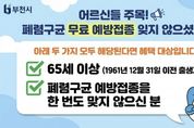 (비전21뉴스) 부천시는 폐렴으로 인한 중증 질환과 합병증을 예방하기 위해 65세 이상 어르신을 대상으로 폐렴구균 예방접종 참여를 당부하고 있다. 폐렴구균은 세균성 폐렴의 주요 원인균으로 전체 세균성 폐렴의 40% 이상을 차지하며, 균혈증과 뇌수막염 등 중증 감염을 유발할 수 있어 고령층의 각별한 주의가 필요하다. 이에 따라 예방접종을 통한 사전 예방의 중요성이 강조되고 있다. 국가예방접종사업에 따라 65세 이상 어르신 중 폐렴구균 예방접종을 받지 않은 대상자는 무료 접종이 가능하며, 주민등록번호 기준 1961년 12월 31일 이전 출생자가 해당된다. 접종 백신은 폐렴구균 23가 다당백신(PPSV23)으로, 평생 1회 무료 접종을 지원한다. 예방접종은 주소지와 관계없이 가까운 지정 의료기관 또는 보건소에서 받을 수 있으며, 방문 전 예방접종도우미 누리집이나 의료기관에 문의해 접종 가능 여부를 확인해야 한다. 송정원 부천시 보건소장은 “폐렴구균 감염은 고령층에서 중증으로 진행될 위험이 높은 만큼, 미접종 어르신은 예방접종을 완료해 주시길 바란다”며 “건강한 노후를 위해 예방접종에 적극 참