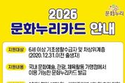 (비전21뉴스) 정부 정책에 따라 2026년부터 통합문화이용권(문화누리카드)과 청년문화예술패스 제도가 개편된다. 이에 따라 양주시는 개편 기준에 맞춰 지역대상자를 대상으로 해당 사업을 확대 시행한다고 밝혔다. 통합문화이용권(문화누리카드)은 6세 이상 기초생활수급자와 차상위계층을 대상으로 문화·여행·체육 활동을 지원하는 사업으로, 2026년에는 지원 인원이 16,386명으로 전년 대비 1,687명 증가한다. 또한 1인당 지원 금액도 기존 14만 원에서 15만 원으로 1만 원 인상된다. 특히 청소년(13~18세)과 생애전환기(60~64세) 대상자는 1만 원이 추가 지원돼 총 16만 원을 지원받게 된다. 청년층의 문화 향유 기회를 넓히기 위한 청년문화예술패스도 지원 대상이 확대된다. 2026년 지원 인원은 1,645명으로 전년 대비 727명 증가하며, 지원 연령 역시 기존 19세에서 19~20세로 확대된다. 통합문화이용권(문화누리카드)은 2월 2일부터 누리집 또는 각 읍면동 행정복지센터를 방문해 신청 가능하며, 자세한 사항은 문화누리카드 고객지원센터로 문의하면 된다. 청년문화예술패스는 2월
