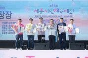 (비전21뉴스) 세종특별자치시가 27일과 28일 세종시민운동장에서 ‘함께 뛰고, 함께 웃는 세종! 체육으로 하나되는 시민체육대회’를 주제로 세종시민체육대회를 성황리에 개최했다. 14회째를 맞는 이번 체육대회는 24개 읍면동에서 총 1,000여 명의 시민들로 구성된 선수들이 출전해 화합과 교류의 시간을 가졌다. 대회는 배구와 배드민턴, 게이트볼, 수영 등 11개 정식종목과 궁도, 파크골프, 그라운드골프 등 3개 시범종목 경기로 구성됐다. 대회에 앞서 세종시와의 교류 10주년을 기념해 중국 산시성 청소년 대표단이 화려한 체조 공연을 펼쳤고 밸리댄스와 초청가수 공연 등 다양한 부대행사가 대회 분위기를 고조시켰다. 이어 제106회 전국체육대회에 출전하는 세종시 선수단의 결단식도 함께 진행돼 세종시의 명예를 걸고 최선의 경기력을 선보이겠다는 다짐을 나눴다. 대회 본경기에서는 각 종목에서 출전한 선수단들이 그간 쌓아온 실력을 뽐내고 화합을 다지는 시간을 가졌다. 최민호 시장은 “참여하신 모든 선수들이 올림픽에 참석한 것처럼 멋진 승부를 펼쳤다”며 “주민들이 선수로 나서 함께 뛸 수 있