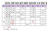 (비전21뉴스) KBO는 26일(금) 2025 신한 SOL뱅크 KBO 정규시즌 2차 잔여 경기 일정을 확정했다. 편성된 경기는 1차 잔여 경기 일정에서 우천 취소된 후 편성되지 않았던 7경기이며, 10월 3일(금)까지 편성됐다. 경기가 우천 등으로 취소될 경우 발표된 일정의 예비일로 우선 편성되며, 다음 날 동일 대진일 경우 더블헤더로 편성된다. 예비일이 없을 경우 추후 편성된다. 경기 개시시간은 평일 18시 30분, 토요일 17시, 일요일 14시이다. 또한 10월 3일(금) 경기는 해당 구단의 전날 경기 후 이동을 고려하여 17시에 편성한다. 한편, 우천 등으로 연기되는 경기가 포스트시즌 참가팀 이외의 팀간 경기이거나 포스트시즌 진출팀이라도 해당 시리즈와 관계없는 대진일 경우에는 정규시즌 최종일과 와일드카드 결정전 개막일 사이의 이동일 또는 포스트시즌 기간 중에도 경기를 거행할 수 있으며 와일드카드 결정전 진출 구단의 정규시즌 마지막 경기와 와일드카드 결정전 개최일 사이 최소 하루의 이동일을 둘 예정이다. 또한, 정규시즌 제1,5위 구단이 두 팀일 경우에는 KBO 리그 규정에 의거 와일드카드 결정