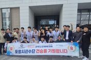 (비전21뉴스) 포항시는 ‘제64회 경북도민체육대회’ 사전경기 농구 남자고등부 8강전에서 구미시를 32대 28로 제압하고 4강에 진출했다. 이번 경기는 지난 27일 예천에서 열린 가운데, 포항시는 이번 대회 유력 우승 후보로 꼽히는 구미시를 상대로 경기 초반부터 팽팽한 접전을 펼친 끝에 값진 승리를 거뒀다. 특히 이번 8강전은 포항시 농구 종합우승을 향한 중요한 분수령이 되는 경기로, 선수들은 끝까지 집중력을 유지하며 투혼을 발휘해 의미 있는 결과를 만들어냈다. 이날 경기장에는 포항시 체육산업과와 북구보건소, 송도동, 송도동체육회, 포항시체육회 관계자 등 100여 명이 함께 응원에 나서 선수들에게 큰 힘을 보탰다. 또한 박재관 포항시 자치행정국장이 직접 현장을 찾아 선수단을 격려하며 사기 진작에 힘을 더했다. 서장원 포항시농구협회장은 “선수들이 끝까지 최선을 다해 좋은 결과를 낼 수 있도록 적극 지원하겠다”며 “남은 경기에서도 마지막까지 최선을 다하겠다”고 말했다. 박재관 자치행정국장은 “어려운 경기 속에서도 끝까지 포기하지 않고 값진 승리를 거둔 선수들이 매우 자랑스럽