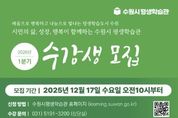 (비전21뉴스) 수원시평생학습관이 12월 17일 오전 10시부터 2026년 1분기 수강생을 모집한다. 1월부터 3월까지 운영되는 1분기 강좌는 ▲첨단미래기술 프로그램 ▲디지털 지식정보 프로그램 ▲생활문화 프로그램 ▲교양 프로그램 ▲인문 프로그램 ▲기관 협력 재능기부 프로그램 ▲거북이공방 프로그램 ▲대상별 맞춤프로그램 ▲시민교육 프로그램 ▲언제든학교 시민기획 프로그램 ▲무지한스승의만남 시민참여기획 프로그램 등 총 11개 과정, 115개 세부 강좌로 구성됐다. 첨단미래 기술 프로그램을 강화했다. 인공지능(AI) 기술에 초점을 둔 첨단미래기술 프로그램, 성균관대학교 지능로봇리빙랩과의 협업을 통한 자율주행 실습, 가상현실(VR)드론 시뮬레이션 체험 등이 있다. 또 글쓰기, 사주명리학, 한글 서예, 현대미술, 명화감상, 뮤지컬 등을 주제로 한 교양 프로그램과 중장년, 시니어, 제2의 인생설계, 청소년 등을 대상으로 하는 대상별 맞춤 프로그램을 마련했다. 수원시는 새빛톡톡 시민 설문조사를 활용해 2026년 강사를 공개 모집했고, ▲생활문화 프로그램 ▲디지털 지식정보 프로그램 ▲대상별 맞춤프로그램 ▲첨단미래기