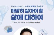 (비전21뉴스) 전직 코미디언인 고명환 작가가 12월 18일 오후 4시 시청 대강당에서 열리는 제174회 수원새빛포럼 강사로 나선다. 고명환 작가는 ‘마땅히 살아야 할 삶에 대하여’를 주제로 강연한다. 남과 비교하며 타인이 정해준 기준에 맞춰 살아갈 때 마주하는 상실감을 짚고, 자신을 먼저 돌아보는 태도가 행복으로 가는 출발점이 될 수 있다는 메시지를 전할 예정이다. 또 한 해를 정리하는 시점에서 삶의 방향을 점검하고 단단한 내면으로 나아가는 방법 등도 이야기한다. 고명환 작가는 1994년 대학개그제 금상을 받으며 데뷔, 2000년대 코미디언으로 활동했다. 2005년 교통사고 이후 뮤지컬 배우, 요식업, 집필 등 다양한 분야에 도전해 왔다. 2017년 자기계발서 집필을 계기로 작가 활동을 본격화했다. '나는 어떻게 삶의 해답을 찾는가' 등을 펴냈고, 유튜브 채널 ‘고명환TV’를 운영하고 있다. 제11회 교보문고 출판 어워즈 ‘올해의 작가’에 이름을 올렸다. 수원새빛포럼 참여를 원하는 시민은 별도 신청 없이 포럼 당일 수원시청 대강당을 찾으면 된다. 수원새빛포럼은 사회 각 분야 명사를 초