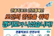 (비전21뉴스) 경기도는 11월 한 달간 경기도의회, 경기도교육청, 경기 남ㆍ북부경찰청, 경기도교통연수원, 한국도로교통공단, 시군 등 유관기관과 함께 전동킥보드 안전문화 합동캠페인을 추진한다. 도는 전동킥보드 주요 사고 다발지역 및 유동인구 밀집 지역을 중심으로 유관기관 및 시민단체와 연계해 전동킥보드 필수 안전수칙이 담긴 홍보물을 배부하고 경찰과 협력해 현장 계도 활동도 병행한다. 시군별 전광판, 현수막 등 지역 홍보 매체를 적극 활용해 전동킥보드 안전수칙 홍보도 적극 확대할 계획이다. 특히 전동킥보드 사고 발생의 주요 원인인 면허 자격, 이용 연령, 안전모 착용, 동승 금지 의무 등을 집중적으로 안내하고, 교육청과 협력해 청소년 대상 교육도 강화할 방침이다. 윤태완 경기도 광역교통정책과장은 “이번 안전캠페인은 전동킥보드 안전이용 문화가 안착되는 계기가 될 것”이라며 “도에서는 캠페인 기간이 끝나더라도, 경찰청·교육청 등 유관기관과 지속 협력해 전동킥보드 안전사고 예방에 총력을 다할 계획이다”고 말했다. 현재 경기도 내 운영 중인 공유 전동킥보드는 6만 7,866대로 31개 시군 전역