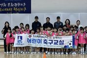 (비전21뉴스) 수원시 장안구 영화동은 지난 16일, 영화동 행정복지센터에서 수원FC와 함께하는 ‘어린이 축구교실 일일특강’을 진행했다. 이날 행사에는 수원FC선수단과 다함께돌봄센터 4호점 아동 25명이 참여해 수원FC 선수들에게 드리블, 패스, 슈팅 등 기초적인 축구 기술을 배우는 시간과 미니축구게임 등 즐거운 시간을 가졌다. 수업 이후에는 아이들이 평소 수원FC선수단에게 축구에 관해 궁금했던 질문을 할 수 있는 소통 시간을 마련하여 뜻깊은 기회를 제공했다. 이번 축구교실은 지역사회 아동의 건강한 성장과 긍정적인 정서 발달을 돕기 위해 마련됐으며, 마지막까지 선수들과 함께한 기념촬영으로 아이들에게 잊지 못할 추억을 선사했다. 추혜경 영화동장은 “평소 영화동에는 어린이를 위한 프로그램이 부족했는데 수원FC 덕분에 우리의 미래인 아이들이 선수들과 즐겁게 뛰어놀며 협동심과 자신감을 가질 수 있는 특별한 경험을 할 수 있었다”며, “앞으로 영화동 아이들이 참여할 수 있는 더 많은 체험 프로그램을 열 수 있도록 노력하겠다”고 밝혔다.