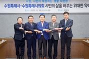 (비전21뉴스) 수원시 여야가 “민생안정을 위한 시민체감 숙원사업을 추진하겠다”고 공동선언을 했다. 이재준 수원시장, 수원시의회 이재식 의장, 김정렬 부의장, 김동은 더불어민주당 교섭단체 대표, 박현수 국민의힘 교섭단체 대표는 10일 시청 상황실에서 여야 공동선언을 하고, 협력을 약속했다. 수원시 여야가 뜻을 모아 추진하는 시민체감 숙원사업은 ▲출산지원금 확대 ▲청소년 생리용품 지원 ▲무상교통 ▲대상포진 무료접종 등 시민들에게 실질적으로 도움이 되는 것들이다. 10월 조례안 의결, 예산 편성 후 내년 시행 예정 10월 임시회에서 조례안을 의결하고, 11월 정례회에서 예산을 편성한 후 내년에 시행할 계획이다. ‘무상교통’은 70세 이상 어르신 등이 무료로 대중교통을 이용할 수 있도록 교통비를 지원하는 사업이고, ‘청소년 생리용품 지원’은 11~18세 여성 청소년에게 생리용품을 지원하는 것이다. ‘출산지원금 확대’는 첫째 아이 출산지원금(50만 원)을 신설하고, 둘째 아이 출산지원금은 기존 50만 원에서 100만 원으로 상향하는 것이다. ‘대상포진 무료 예방접종’은 65세 이상 시민에게 무