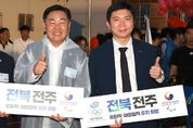 (비전21뉴스) 전북특별자치도는 9월 12일 고창군에서 열린 ‘제62회 전북특별자치도민 체육대회’ 개회식 현장에서 전주 하계올림픽 유치 기원 홍보부스를 운영해 큰 호응을 얻었다고 밝혔다. 이번 홍보부스 운영은 도민체전에 참가한 14개 시‧군 39개 종목 임원 선수단과 관람객 등을 대상으로 진행됐으며, 올림픽 유치에 대한 도민의 관심과 지지 기반을 확대하고, 전북의 스포츠 역량과 국제행사 개최 가능성을 널리 알리는 계기가 됐다. 홍보부스는 고창군 공설운동장 내 종합 안내 구역에 설치되어, ▲올림픽 유치 소개 ▲홍보물 배포 ▲참여형 이벤트 등 다양한 콘텐츠로 운영됐다. 특히 개회식 전에는 올림픽 홍보영상을 송출하고, 경기장 안팎에 유치 기원 홍보 현수막을 게첨해 현장 분위기를 고조시켰다. 또한 ‘올림픽 홍보 서포터즈 가입 이벤트’도 진행해 도민의 자발적인 참여를 이끌어냈다. 특히 개회식에서는 김관영 전북특별자치도지사는 대한체육회 유승민회장과 함께 선수단 입장을 기다리는 도민들 사이에 합류해 올림픽 유치 홍보 퍼포먼스를 펄쳤다. 갑작스러운 깜짝 등장에 현장 관심이 집중되면서 유치 열기는 한층 뜨겁게 달아올랐다. &