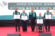 (비전21뉴스) 진안군은 5일 군청 광장에서 2026년 개최 예정인 전북자치도 양대체전의 성공적인 개최를 다짐하는 조직위원회 출범식 및 성공개최 결의대회를 열었다. 이번 행사는 진안군 역사상 최초로 개최되는 제63회 전북특별자치도민체육대회(2026. 9. 4.~9. 6.)와 제20회 전북특별자치도민장애인체육대회(2026. 9. 18.~9. 20.)의 성공 개최를 위해 마련된 자리로 2026년 전북자치도 양대체전 조직위원, 범군민참여위원, 진안군민 등 약 500여 명이 참석했다. 행사는 식전공연을 시작으로 ▲조직위원 위촉장 수여 ▲기념사 및 축사 ▲준비상황 보고 ▲결의문 낭독 ▲성공개최 퍼포먼스 순으로 진행됐다. 이날 결의대회에서는 ‘생태치유 진안에서 하나되는 전북도민’을 슬로건으로, 군민 모두가 주인이 되는 대회를 만들겠다는 다짐이 이어졌다. 행사 후에는 체전 성공개최를 염원하는 ‘군민 걷기행사’가 이어져 출범식 분위기를 한층 고조시켰다. 특히, 진안군은 이번 대회를 인근 지역과의 긴밀한 협력체계 구축과 체육 인프라 확충 노력을 통해 성사시켰다는 점에서 주목받고 있다. 이는 지역 간 상생과 연대의