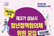 (비전21뉴스=정서영 기자) 성남시는 오는 2월 18일까지 ‘제3기 청년정책협의체’ 위원 100명을 공개 모집한다. 청년정책협의체는 지역 청년을 대표해 성남시에 청년정책을 제안하고 소통하는 청년 참여기구다. 제3기 협의체는 일자리·창업, 교육, 주거, 복지·문화 등 4개 분과로 구성된다. 선발되면 분과별로 △청년정책 의견 수렴과 정책 제안 △청년정책 모니터링 △청년정책 홍보 △ 청년의 날 기념 문화 행사 기획 등의 활동을 하게 된다. 제3기 협의체 활동 기간은 오는 3월부터 내년 말까지다. 시는 청년정책협의체 위원들이 정부의 제2차 청년정책 기본계획(2026~2030년)과 연계해 체계적인 정책 제안할 수 있도록 관련 정책 안내와 교육, 워크숍 등 활동의 장을 마련할 계획이다. 대면 회의에 참석한 위원에게는 참여 활동비 2만원을 지급하고, 우수 활동 위원에게는 연말 표창을 수여한다. 협의체 위원 참여 자격은 성남시에 거주하거나 지역 내 직장 또는 학교에 다니는 19~39세 청년이다. 시는 지원동기, 청년정책 관심도, 활동 경험 등을 서면으로 심사해 위원을 선발한다. 성남시 관계자는 “청년정책의 당사자인 청년들이 주체적으로 정책을 제안하고 시정에 직접 참여할 수