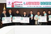 (비전21뉴스) 2026년 붉은 말의 해, 용인특례시 사랑의 열차 이어달리기에 지역사회 따뜻한 나눔의 손길이 이어지고 있다. ‘사랑의 열차 이어달리기’는 용인의 대표 연말연시 이웃돕기 운동이다. 시는 지난해 12월 3일 시청 컨벤션홀에서 ‘희망 2026나눔캠페인 사랑의 온도탑제막식 및 사랑의 열차 이어달리기 발대식’을 열었다. ‘사랑의 열차 이어달리기’는 2월 6일까지 총 68일 동안 이웃돕기 성금 14억 원 모금을 목표로 이뤄진다. 삼성노블라이프 주식회사가 지난해 12월 23일 바자회 수익금 534만9000원을 기탁했다. 같은 날 에버찜질사우나는 성금 500만원을, ㈜토오텍 성금 200만원을, ㈜액션테크는 627만원 상당의 소화기 230대를 시에 기탁했다. 또 ㈜경자네식구들은 350만원 상당의 밀키트 1,000개를, 용인시 기업지원과는 성금 100만원을 전달했다. 수지구청 직장어린이집은 지난해 12월 29일 어려운 이웃에 전달해 달라며 라면 366개를 기탁했다. 이영애 원장은 “아이들이 직접 보고 느끼는 나눔의 기쁨을 통해 진짜 크리스마스의 의미를 느낄 수 있었을 것”이라고 했다. 석