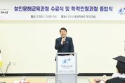 (비전21뉴스) 구리시는 2월 24일 구리시평생학습관에서 ‘2025년 성인 문해 교육 과정 수료식 및 학력인정과정 졸업식’을 개최했다. 2025년 성인 문해 교육은 2025년 3월 17일부터 2026년 2월 13일까지 운영됐으며, 학습자의 학습 욕구와 수준에 맞춰 초급, 중급, 학력 인정 3단계, 중등 예비 등 4개 과정으로 진행됐다. 이 가운데 교육청 지침에 따라 출석률 3분의 2(66.7%) 이상을 충족한 48명의 학습자가 수료증을 받았다. 특히 이번 수료식에서는 4명의 어르신이 ‘성인 문해 학력 인정 3단계’ 과정을 성실히 이수해 경기도교육청으로부터 공식 초등 학력 인정서를 받는 값진 성과를 거뒀다. 이날 행사에 참석한 백경현 구리시장은 “건강상의 어려움이나 가정 형편 속에서도 배움의 끈을 놓지 않으신 어르신들께 지난 1년은 무엇과도 바꿀 수 없는 소중한 시간이었다”라며 “나이와 환경의 제약을 넘어 스스로와의 약속을 지켜낸 여러분께 깊은 경의를 표한다”라고 격려했다. 이어 “성인 문해 교육은 단순히 글을 배우는 과정을 넘어 새로운 삶에 도전하는 뜻깊은 여정”이라며 “오늘의 졸업이 끝이 아니라